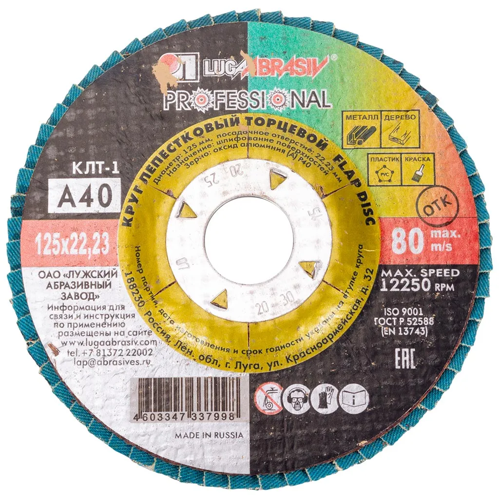 Круг шлифовальный лепестковый Луга, 125х22.2мм, Р40, торцевой