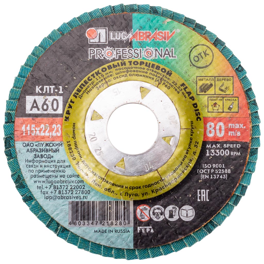 Круг шлифовальный лепестковый Луга, 115х22.2мм, Р60, торцевой