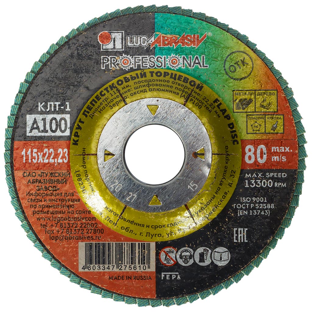 Круг шлифовальный лепестковый Луга, 115х22.2мм, Р100, торцевой