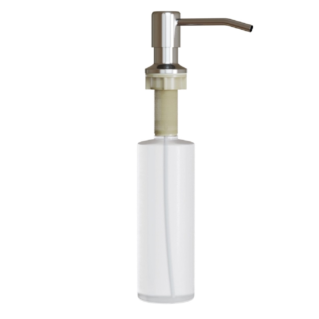 Врезной дозатор для жидких моющих средств с минималистичным и стильным дизайном, позволит сохранить больше рабочего пространства и избавит от лишних подвижных емкостей, всегда под рукой и прост в использовании. Изделие встраивается в поверхность кухонной мойки или в столешницу.