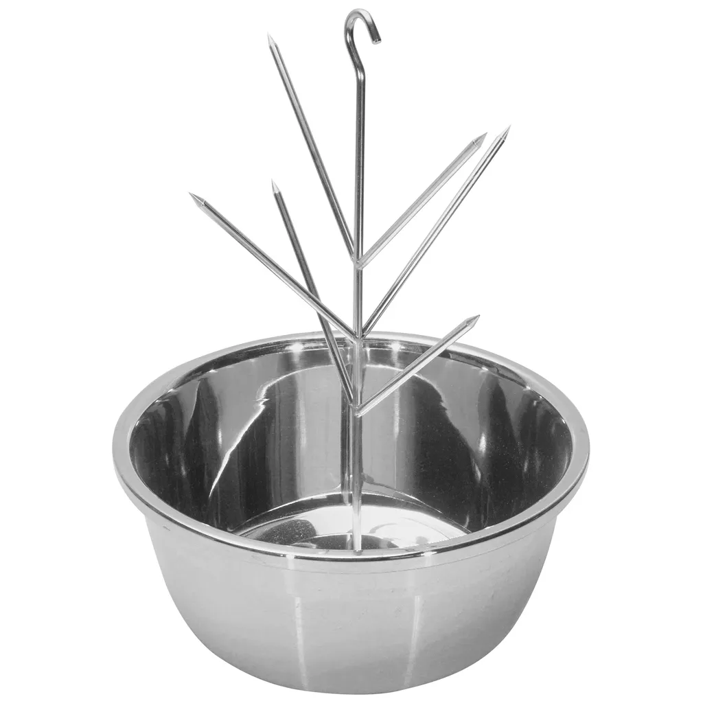 Этажерка на шести шипах длиной по 16 см можно разместить как овощи, так и мясо, соком которого пропитаются продукты находящиеся в чаше. При подготовке продуктов нужно учесть, что расстояние между шипами составляет 5 см. Готовя пищу на этой этажерке вы можете быть уверенными в том, что при нагреве никакие вредные примеси не попадут в ваш организм.