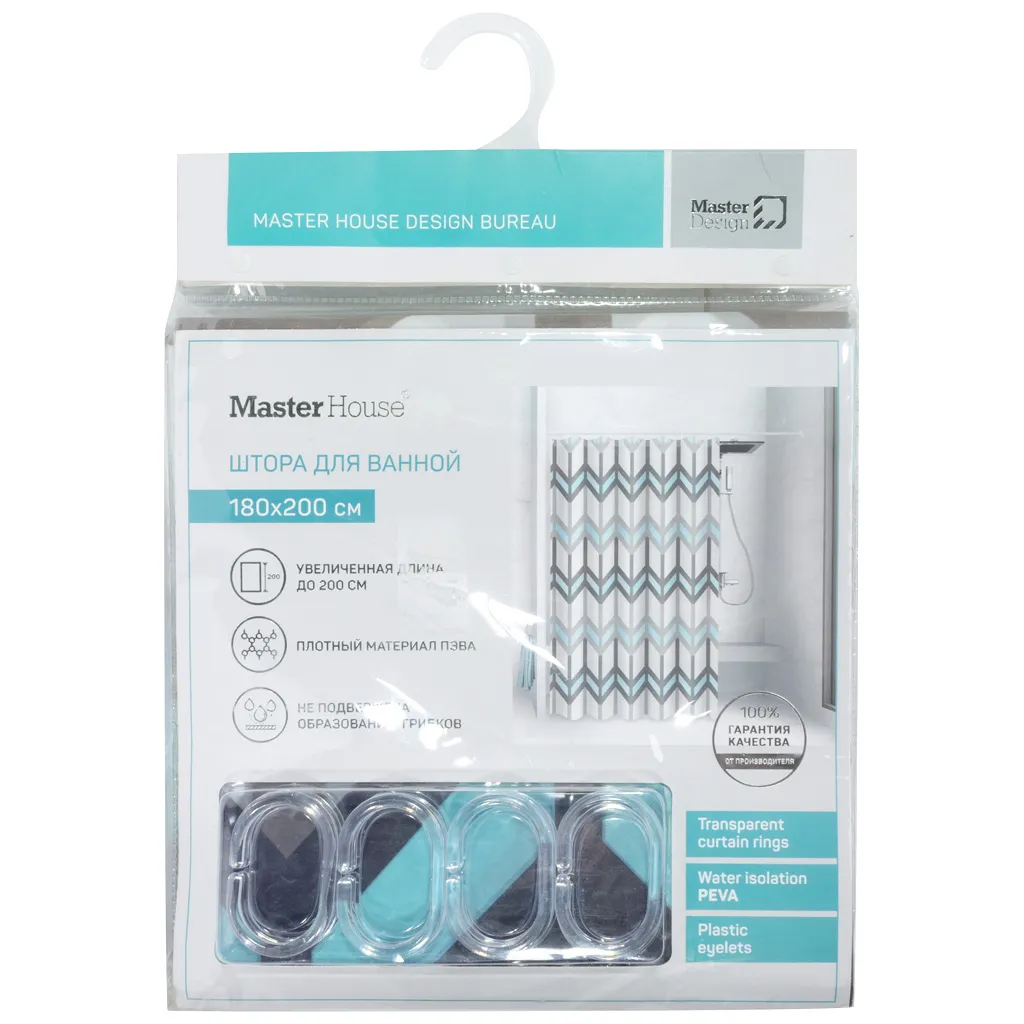 Шторка для ванной Master Design, 200мм х 180мм, Шеврон, с кольцами