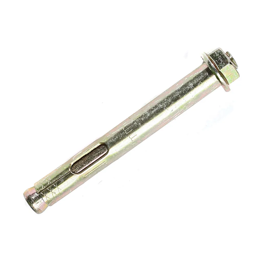 Анкер втулочный с гайкой включает в себя резьбовой стержень с конусом на конце, разжимную втулку с продольными разрезами по всей длине, а также шестигранную гайку с фланцем, которая обеспечивает надежную фиксацию крепления и предотвращает случайное откручивание.