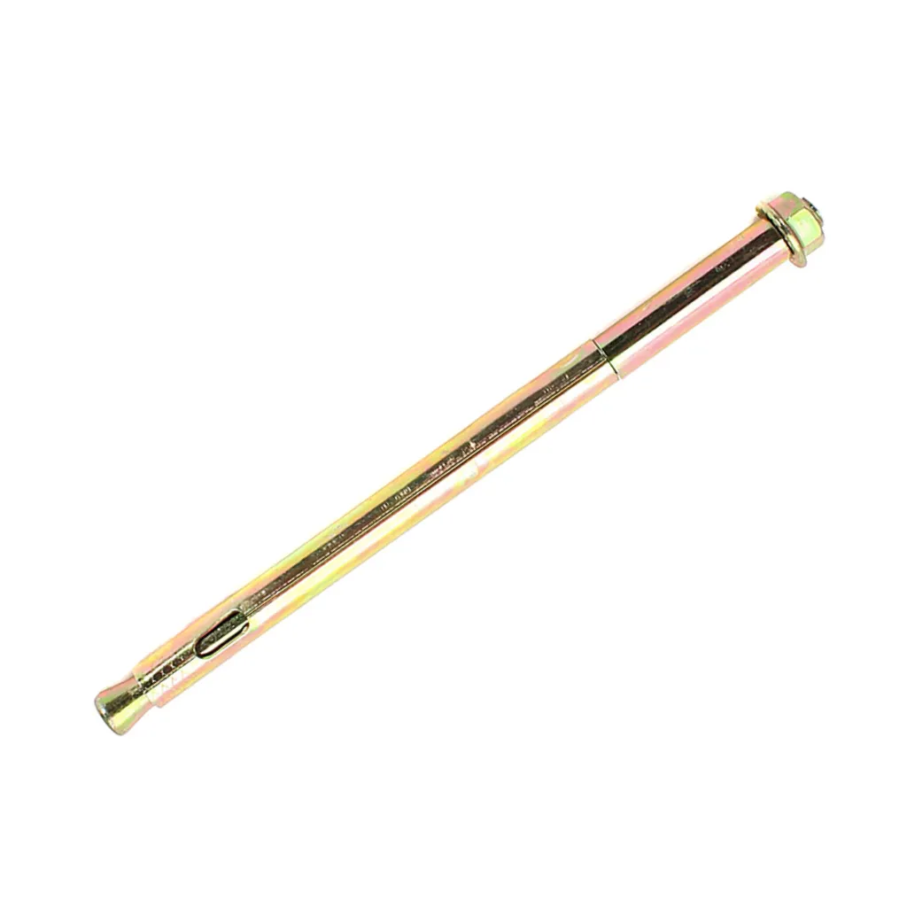 Анкер втулочный с гайкой включает в себя резьбовой стержень с конусом на конце, разжимную втулку с продольными разрезами по всей длине, а также шестигранную гайку с фланцем, которая обеспечивает надежную фиксацию крепления и предотвращает случайное откручивание.