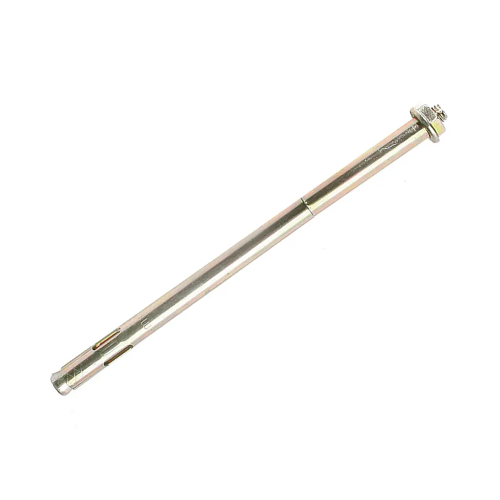 Анкер втулочный с гайкой включает в себя резьбовой стержень с конусом на конце, разжимную втулку с продольными разрезами по всей длине, а также шестигранную гайку с фланцем, которая обеспечивает надежную фиксацию крепления и предотвращает случайное откручивание.