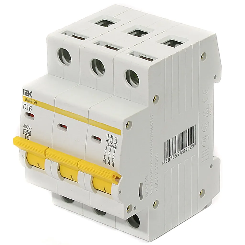 Выключатель автоматический ВА47-29 IEK, 3 полюсный, 16A C 4.5кА
