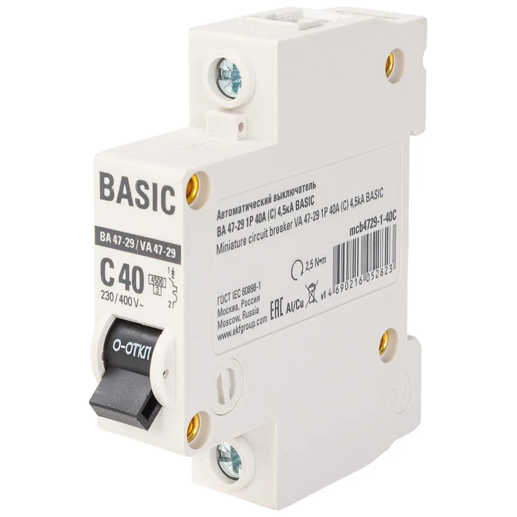 Выключатель автоматический ВА47-29 EKF, 1 полюсный, 40А С 4.5кА