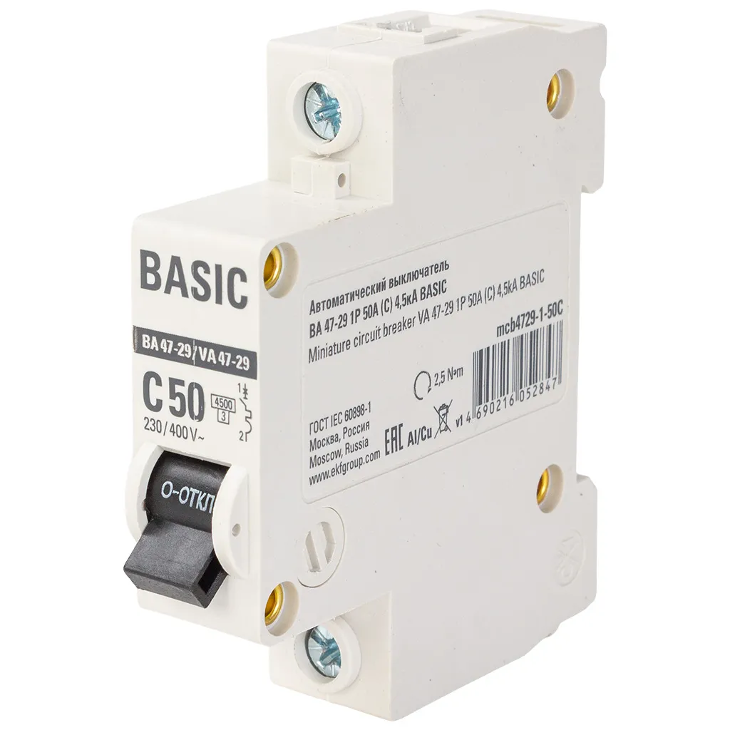 Выключатель автоматический ВА47-29 EKF, 1 полюсный, 50А С 4.5кА