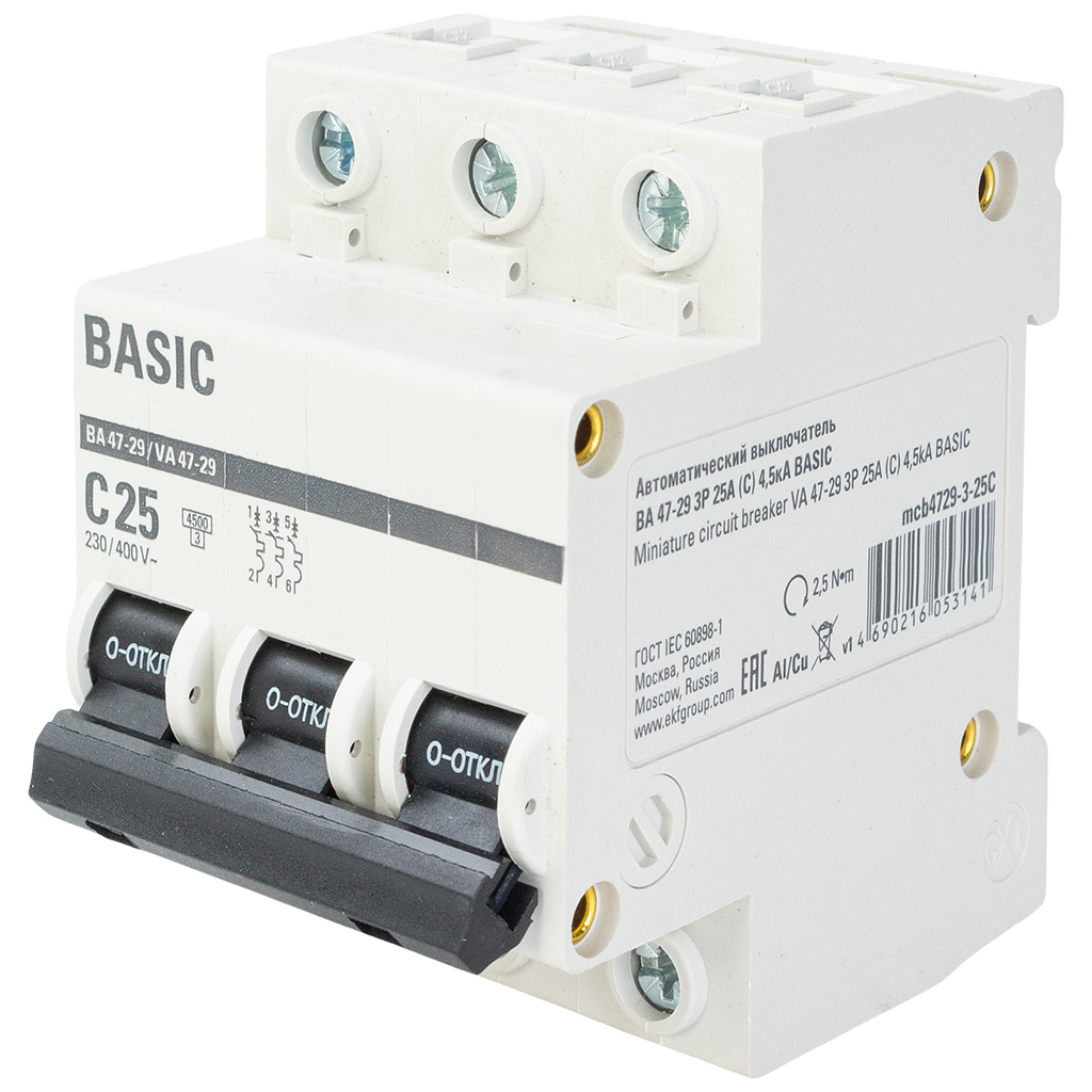 Выключатель автоматический ВА47-29 EKF, 3 полюсный, 25А С 4.5кА