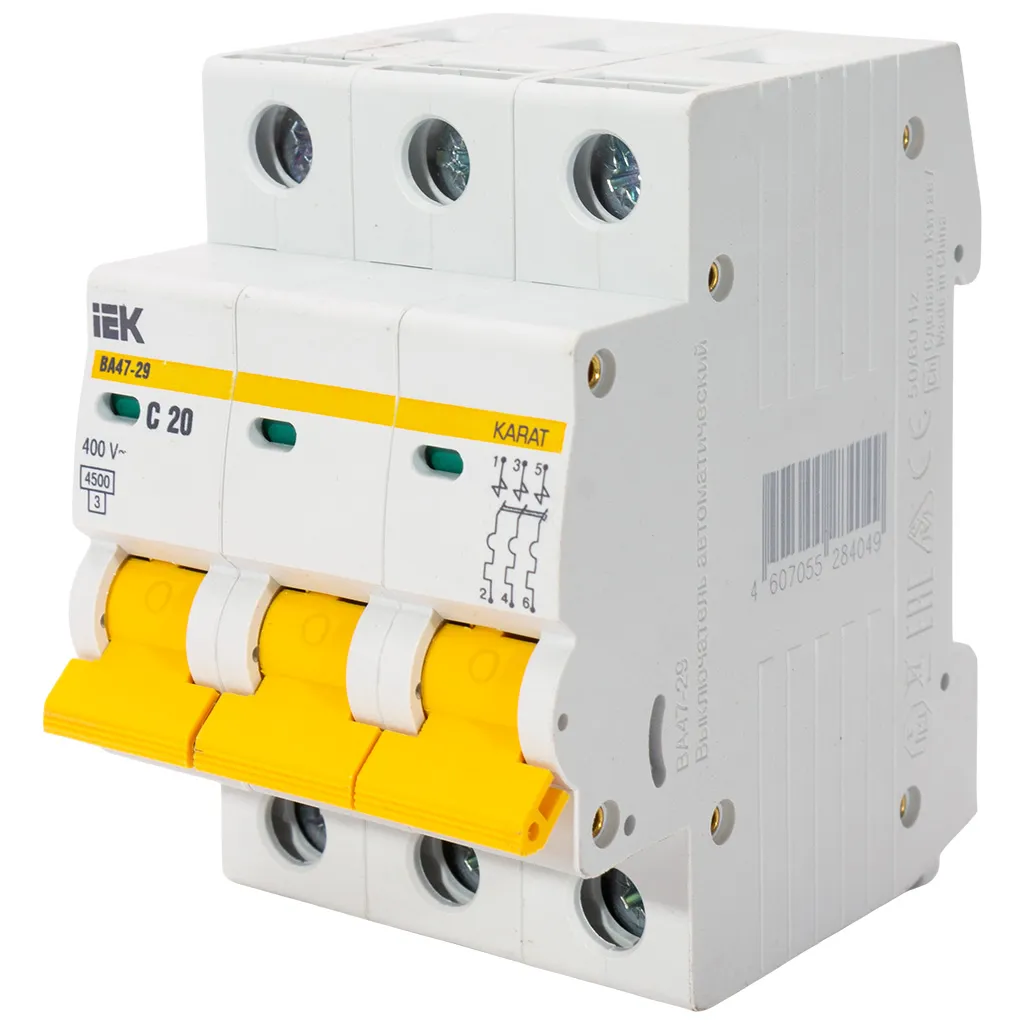 Выключатель автоматический ВА47-29 IEK, 3 полюсный, 20A C 4.5кА