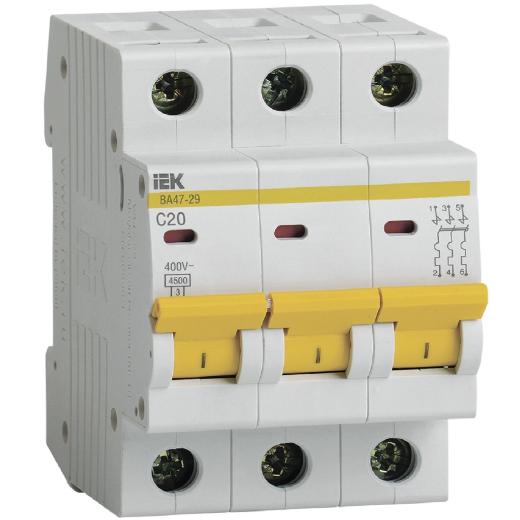 Выключатель автоматический ВА47-29 ИЭК, 3 полюсный, 20A C 4.5кА