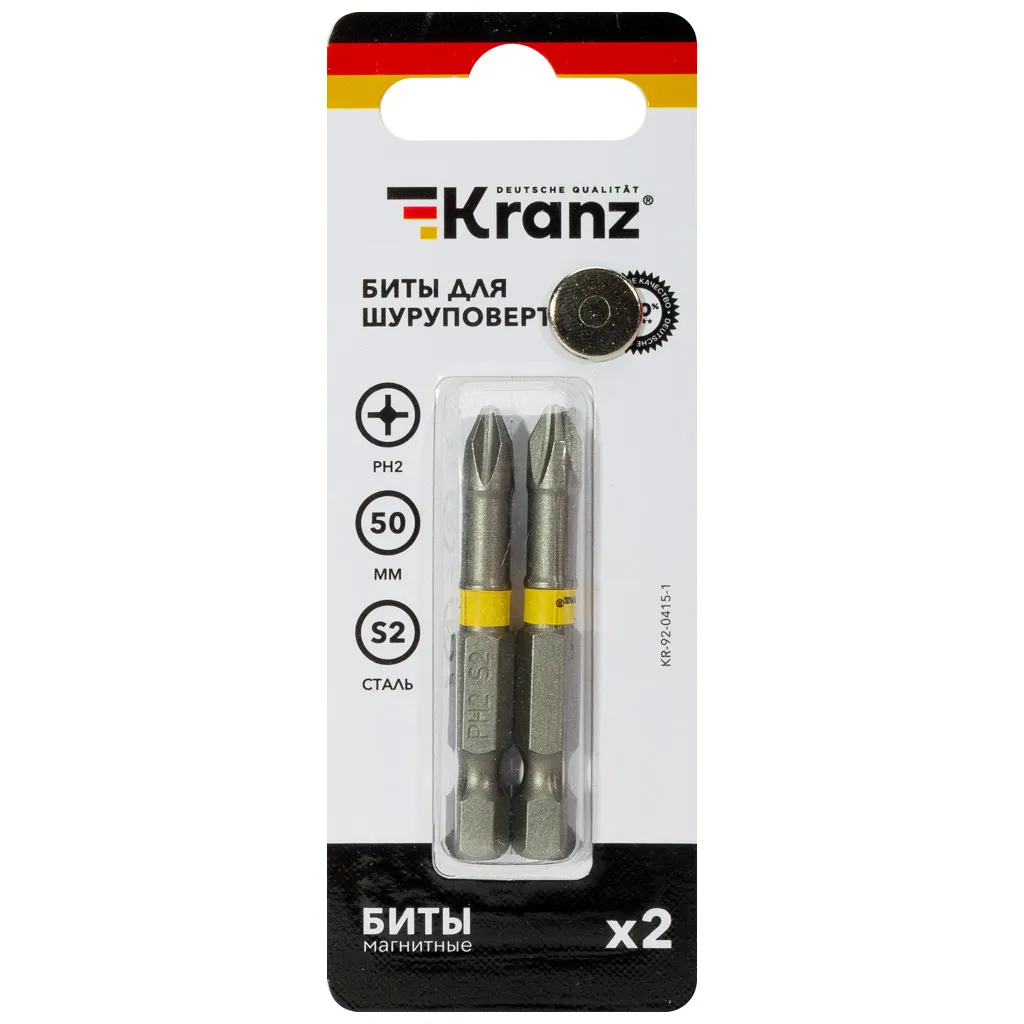 Биты Kranz PH 2, магнитная, 50мм, 2шт/уп
