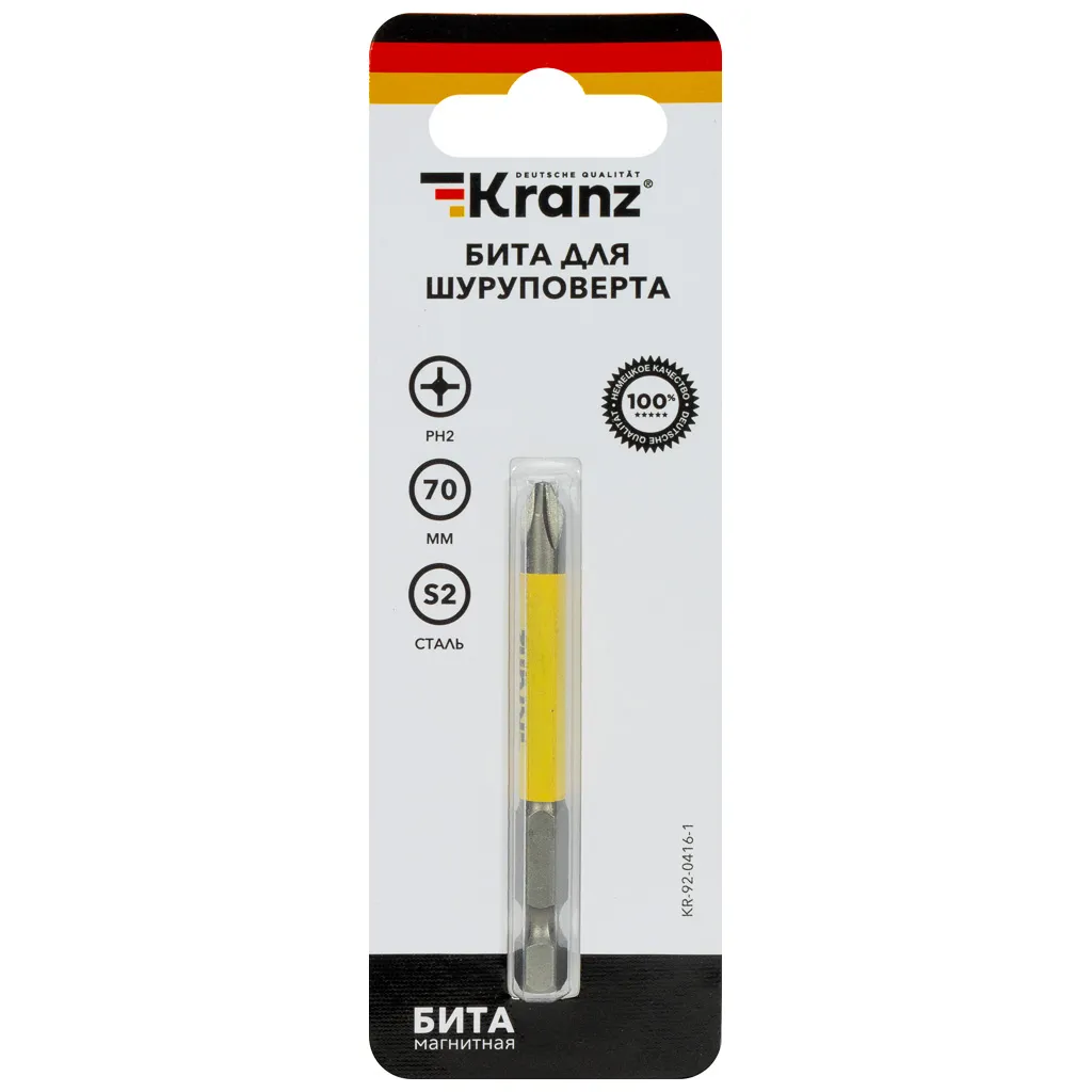 Биты Kranz PH 2, магнитная, 70мм, 1шт