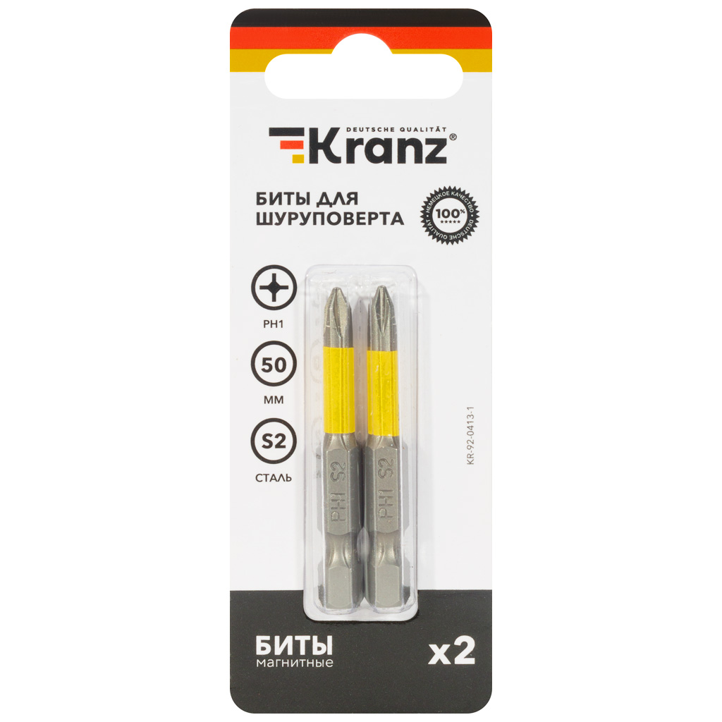 Бита Kranz PH №1, 50мм, магнитная, 2шт