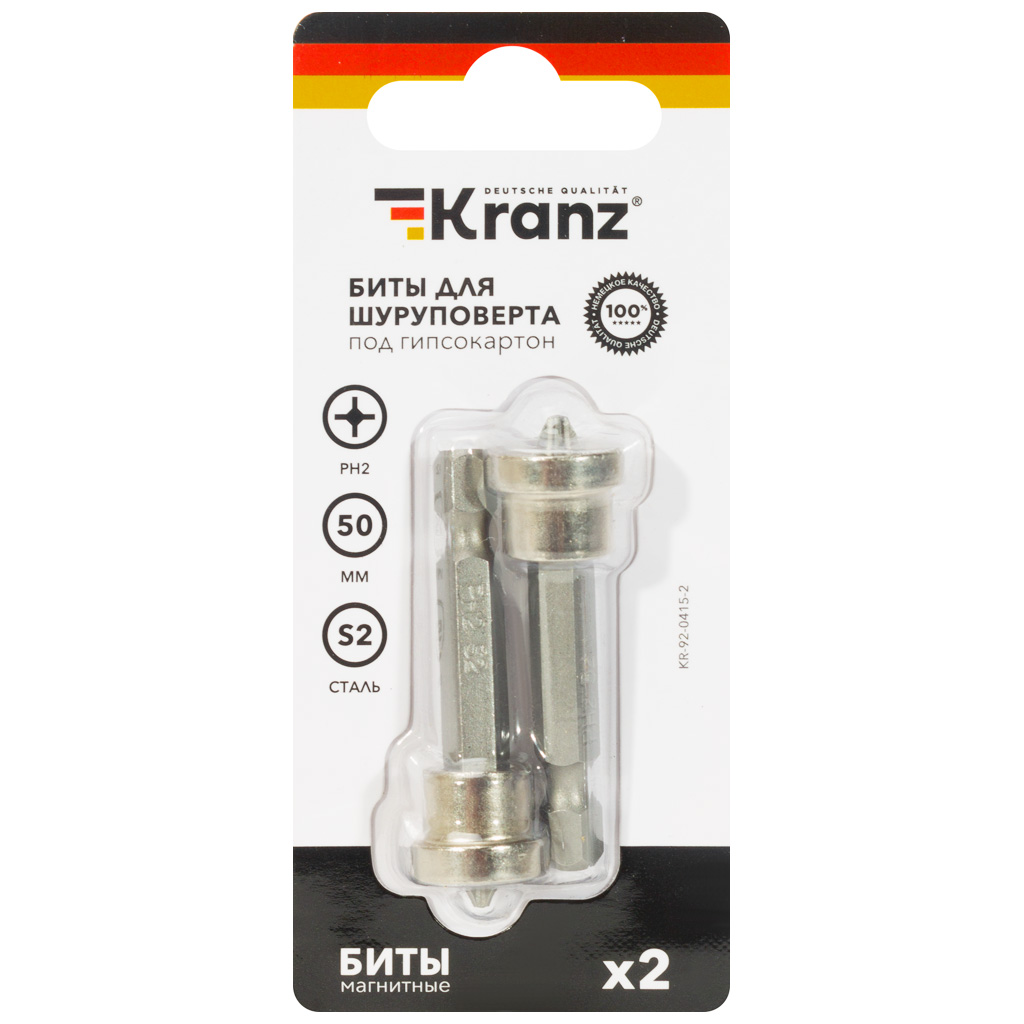 Бита Kranz PH №2, 50мм, с ограничителем, 2шт