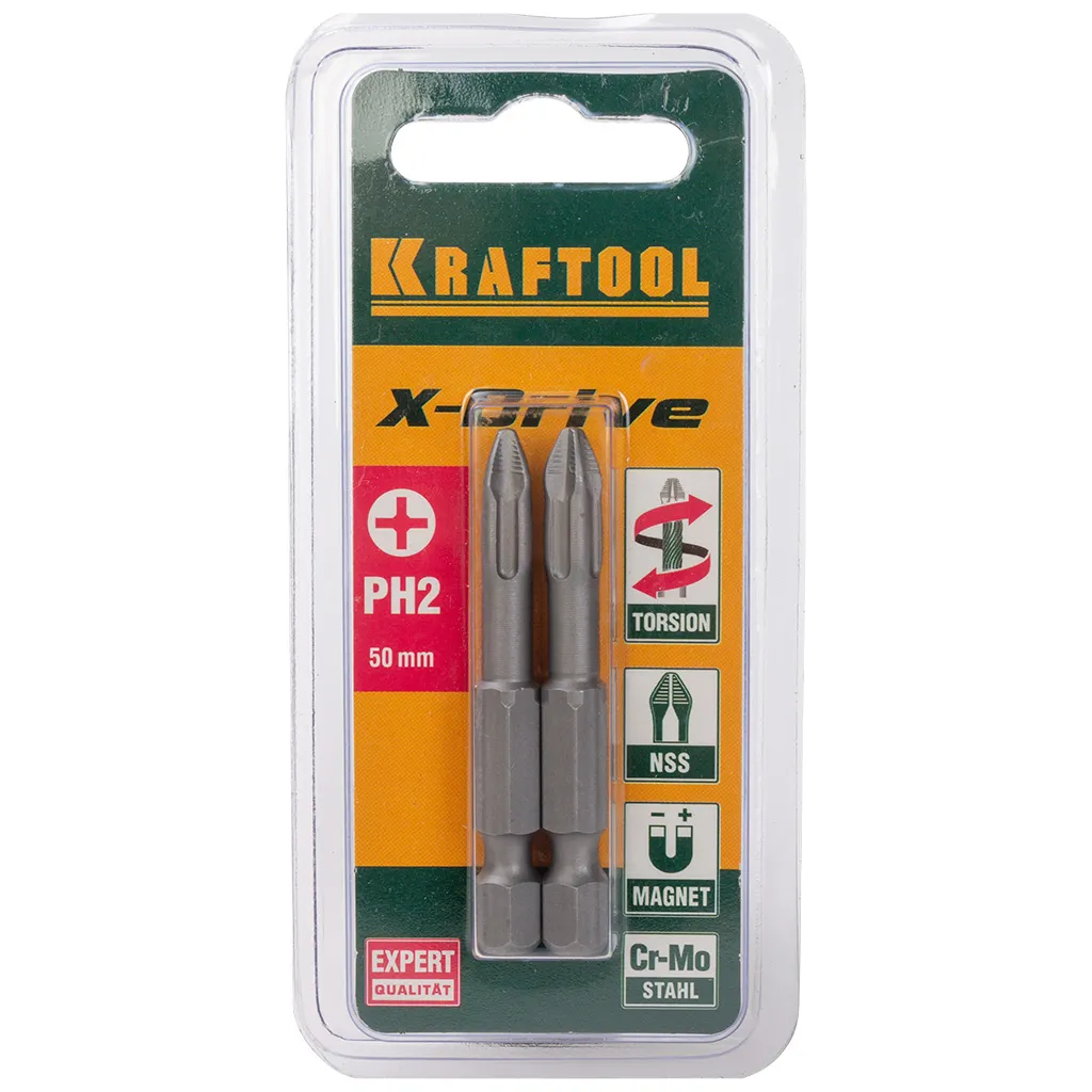 Бита Kraftool X-Drive PH №2, 50мм, торсионная, 2шт