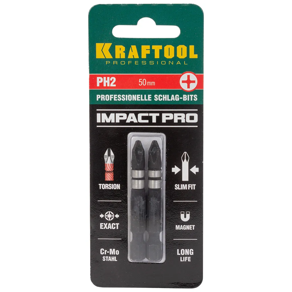 Бита Kraftool Impact PH №2, 50мм, ударная, 2шт