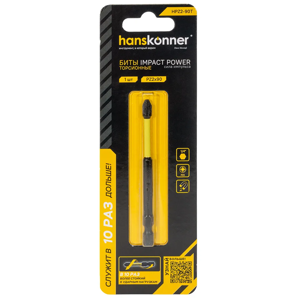 Бита Hanskonner ImppactPower PZ №2, 90мм, торсионные, 1шт