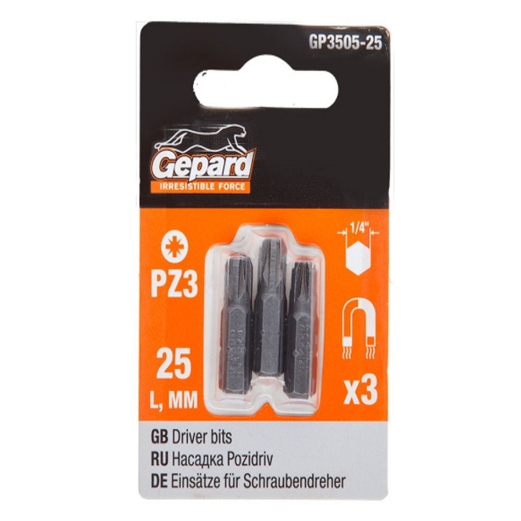 Бита Gepard PZ №3, магнитная, 25мм, 3шт