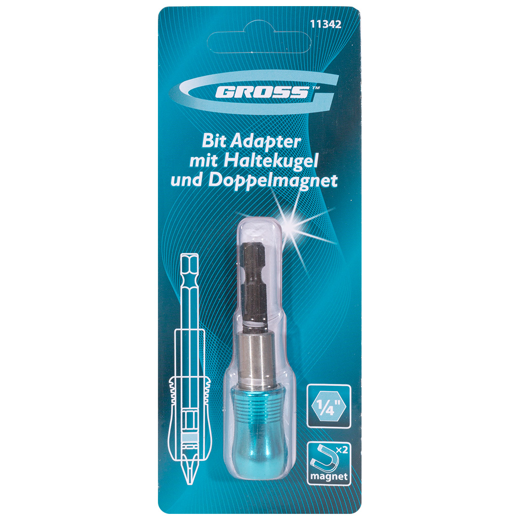 Адаптер Gross 1/4", для бит с держателем и двойным магнитом
