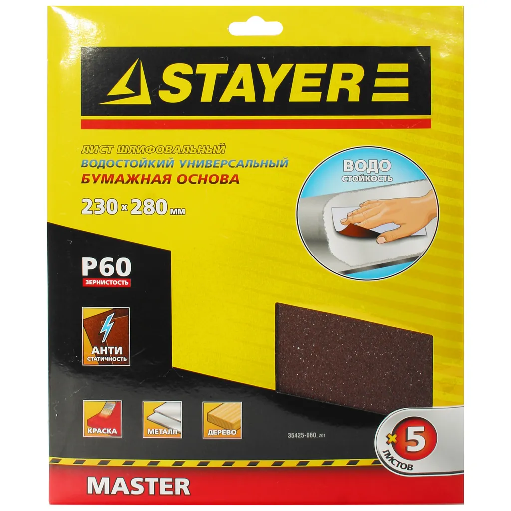 Бумага наждачная Master Stayer № 60, 23х28см, водостойкая, набор 5шт/упак