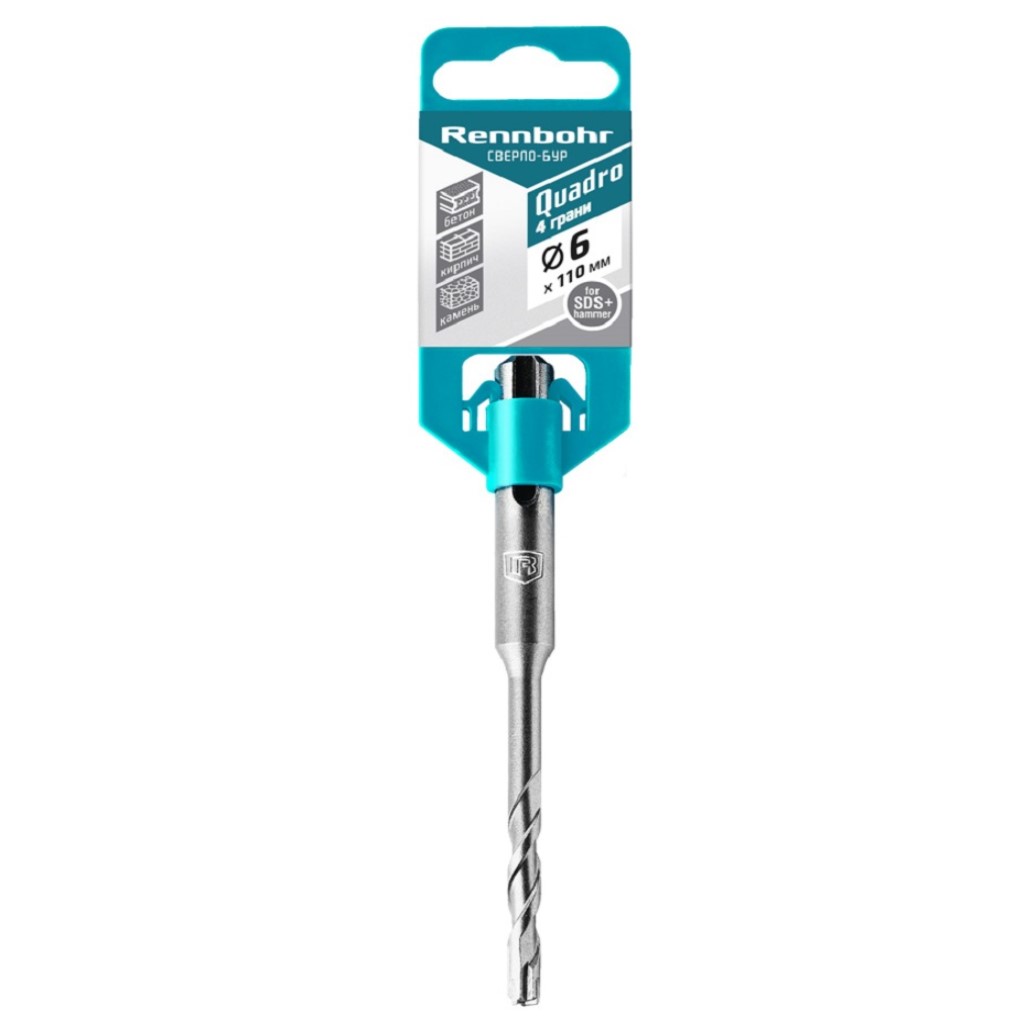 Бур по бетону Rennbohr Quadro, для перфоратора SDS-Plus, 6х91х110мм, 4 грани