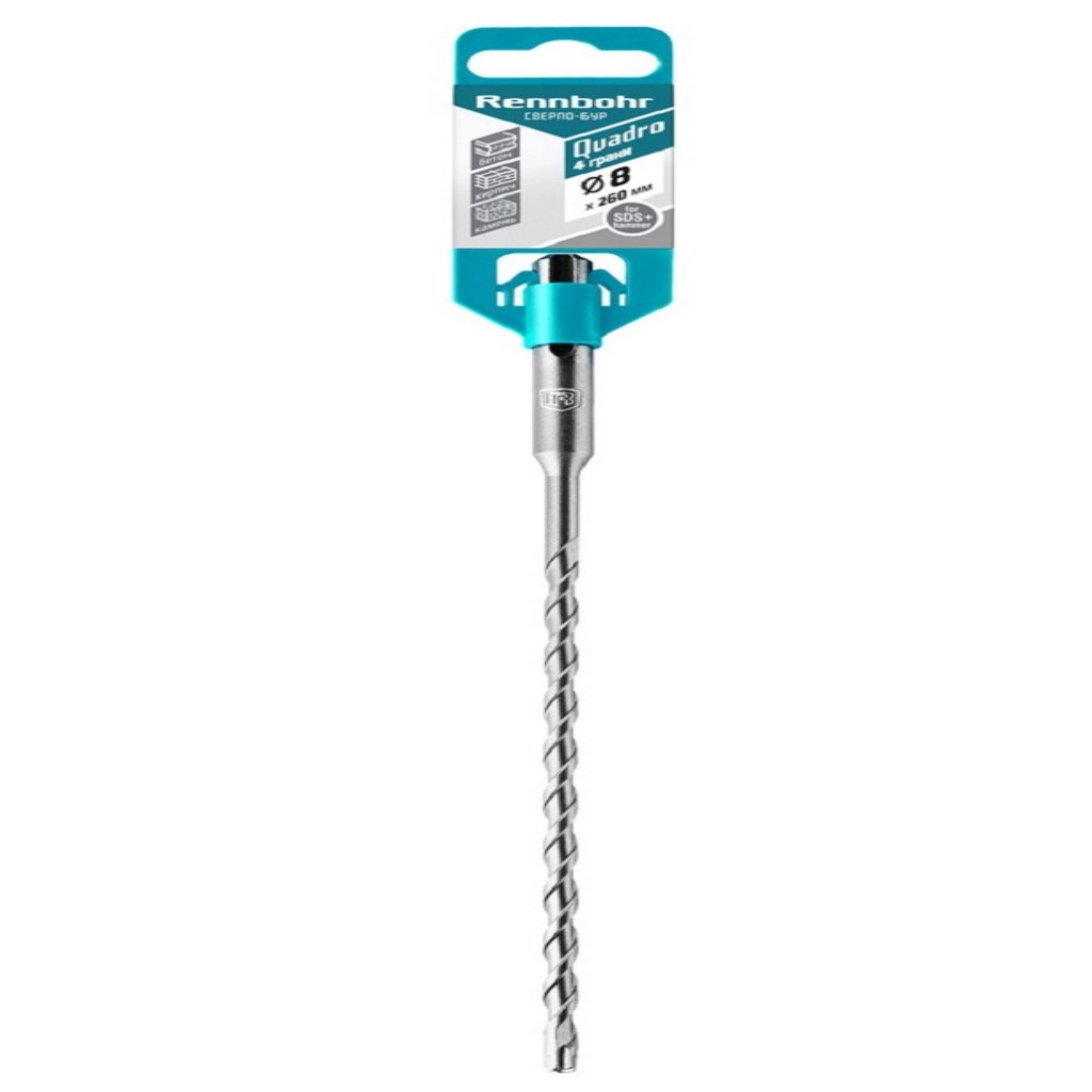Бур по бетону Rennbohr Quadro, для перфоратора SDS-Plus, 8х185х260мм, 4 грани