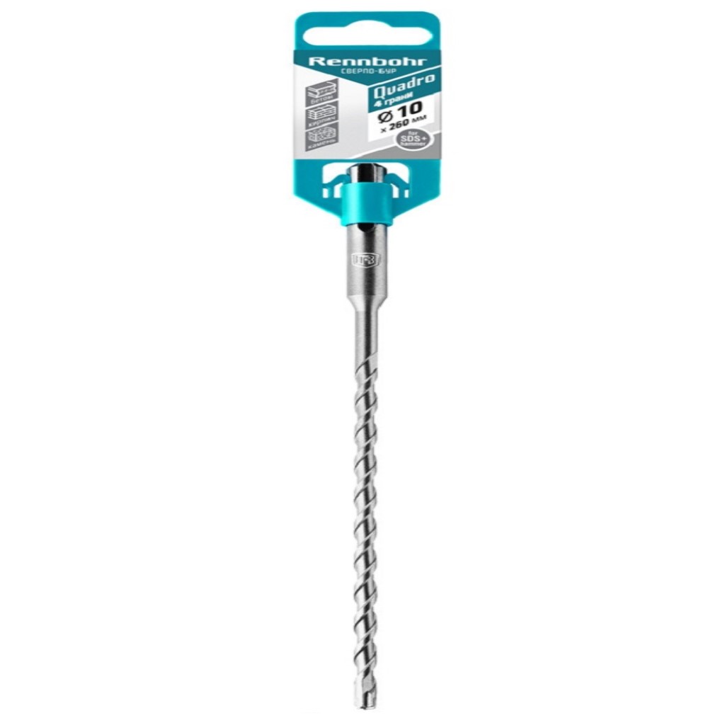 Бур по бетону Rennbohr Quadro, для перфоратора SDS-Plus, 10х185х260мм, 4 грани
