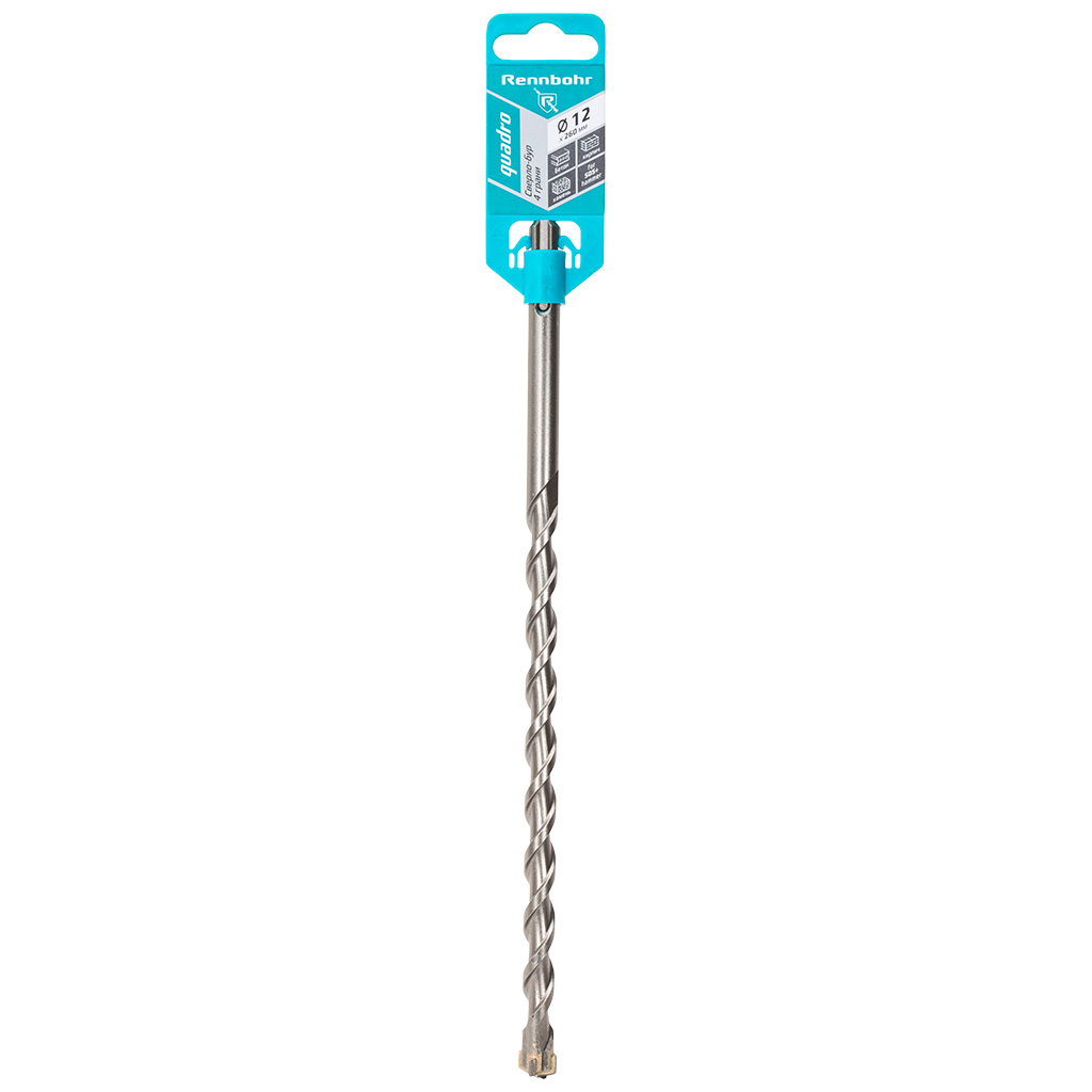 Бур по бетону Rennbohr Quadro, для перфоратора SDS-Plus, 12х185х260мм, 4 грани