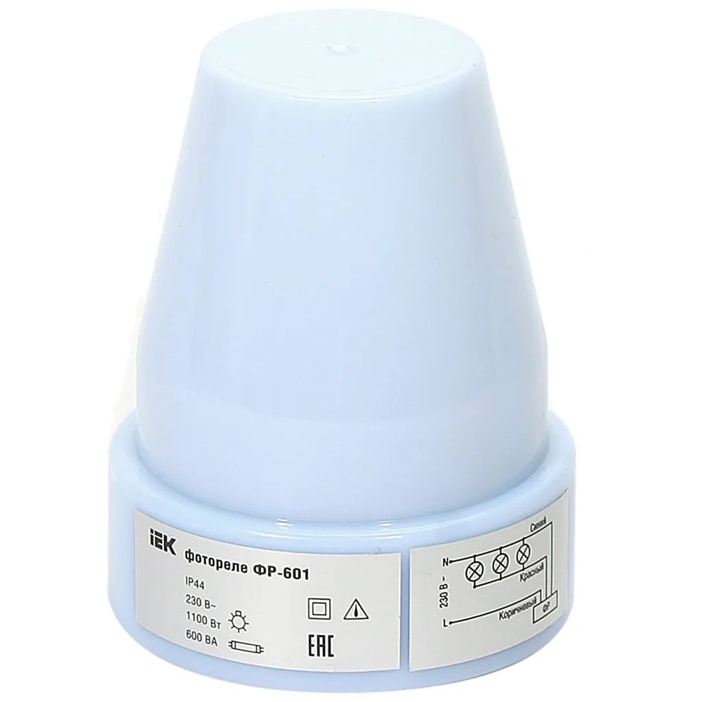 Фотореле ФР601 ИЭК, 2200Вт максимальная нагрузка, серый