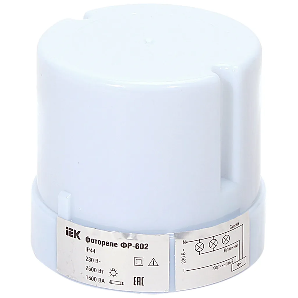 Фотореле ФР602 ИЭК, 5500Вт максимальная нагрузка, серый