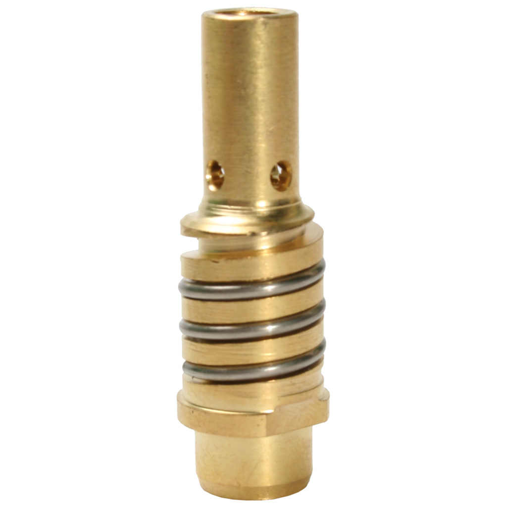Держатель наконечника предназначен для установки и надежной фиксации токосъемного наконечника в сопле. Отверстия на держателе предназначены для равномерного распределения защитного газа в сопле, тем самым держатель также выполняет функции диффузора во время сварки.