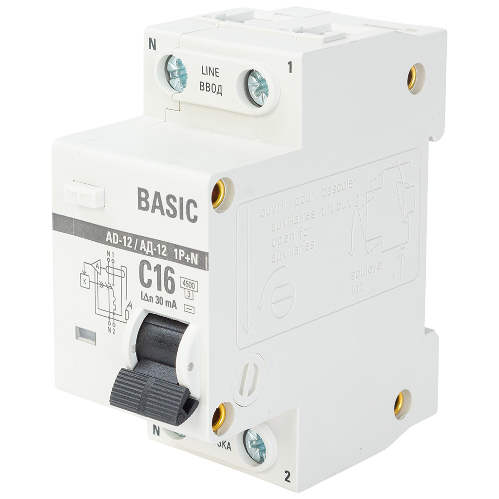 Дифференциальный автоматический выключатель АД-12 EKF, 2 полюсный, 16А 30мА АС