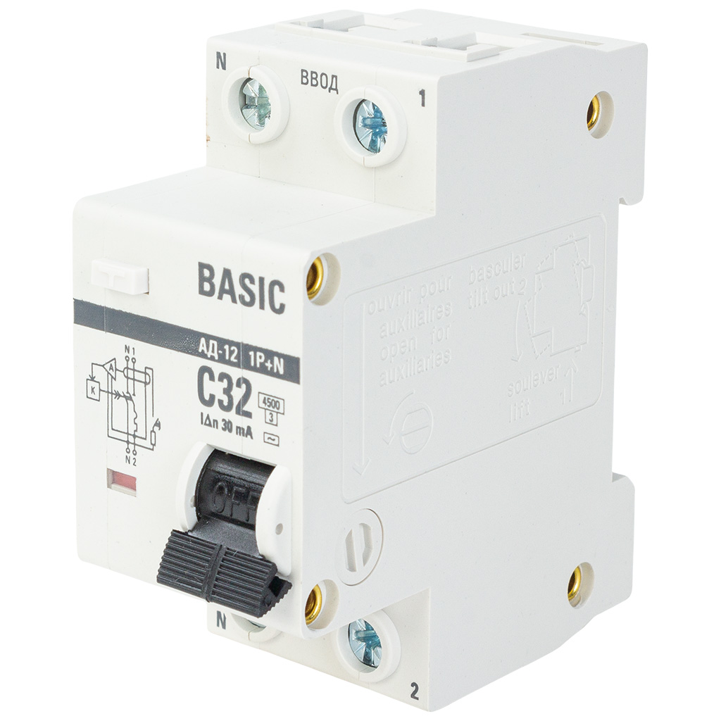 Дифференциальный автоматический выключатель АД-12 EKF, 2 полюсный, 32А 30мА АС