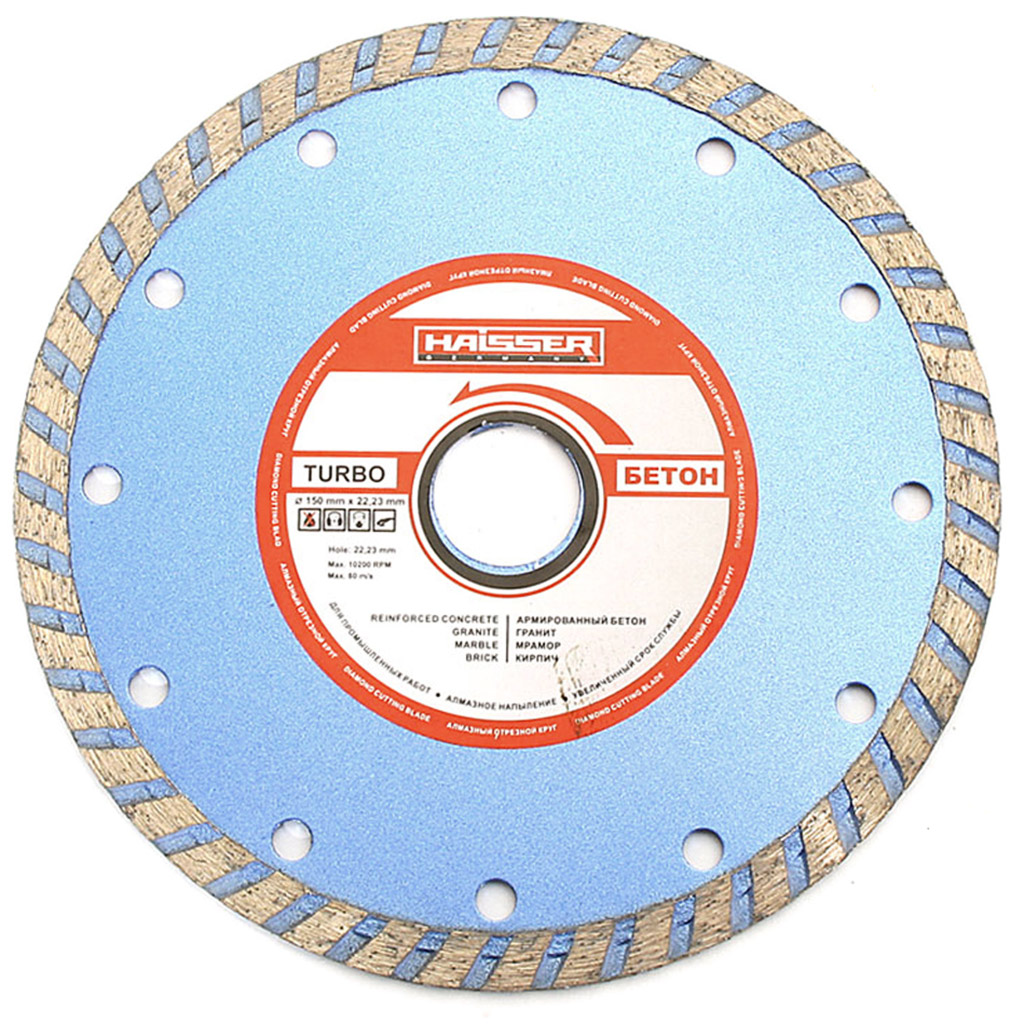 Диск отрезной Haisser Turbo, сплошной, алмазный, по бетону, 150х22.2мм