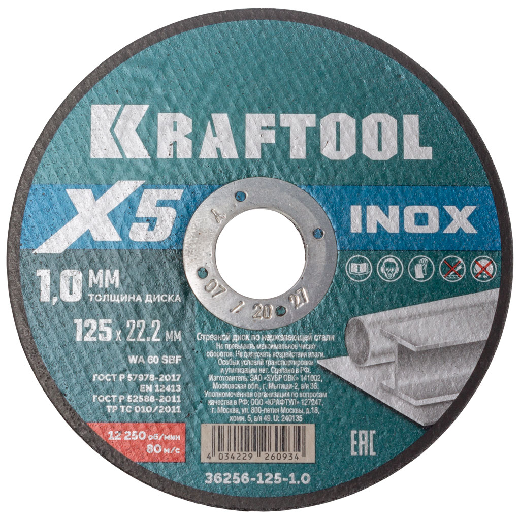 Диск отрезной по металлу Kraftool X5 Inox, 125х22,2х1,0мм