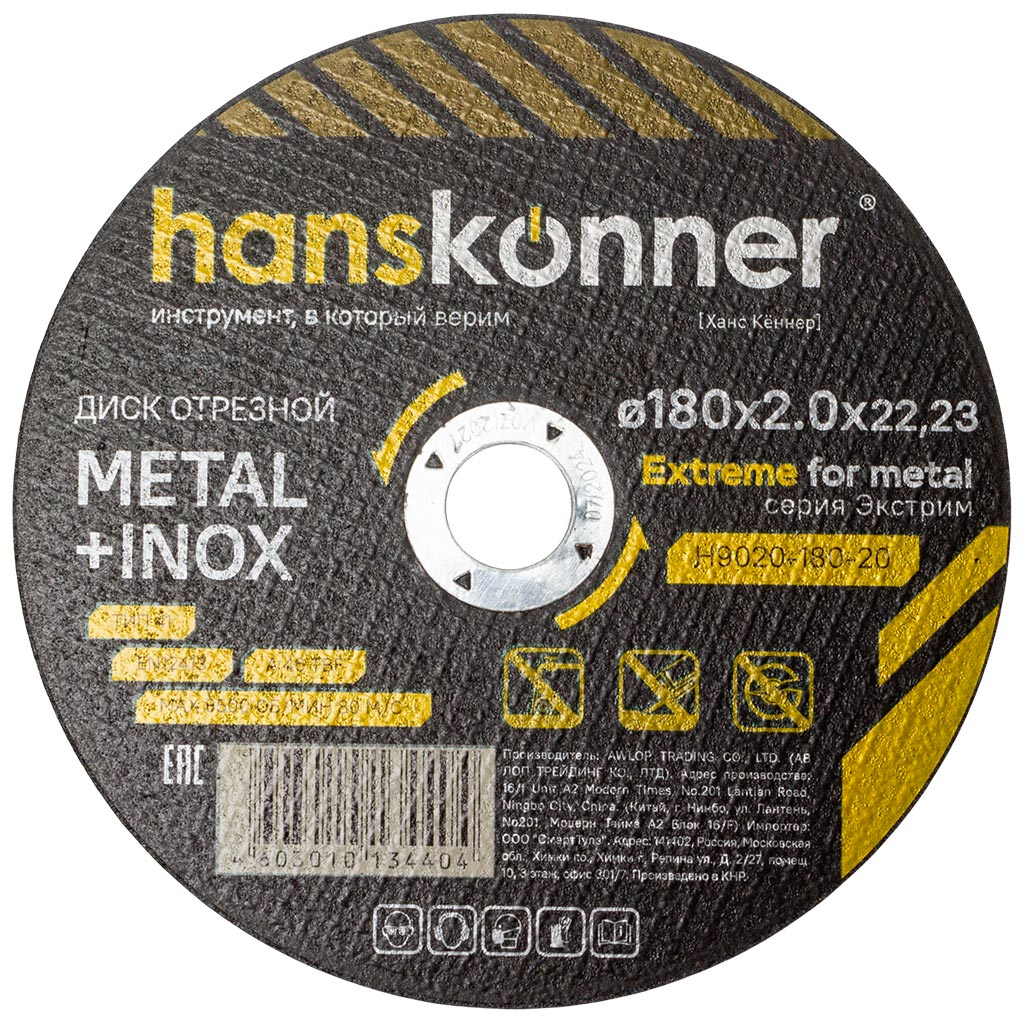 Диск отрезной по металлу Hanskonner, 180х22,2х1.6мм