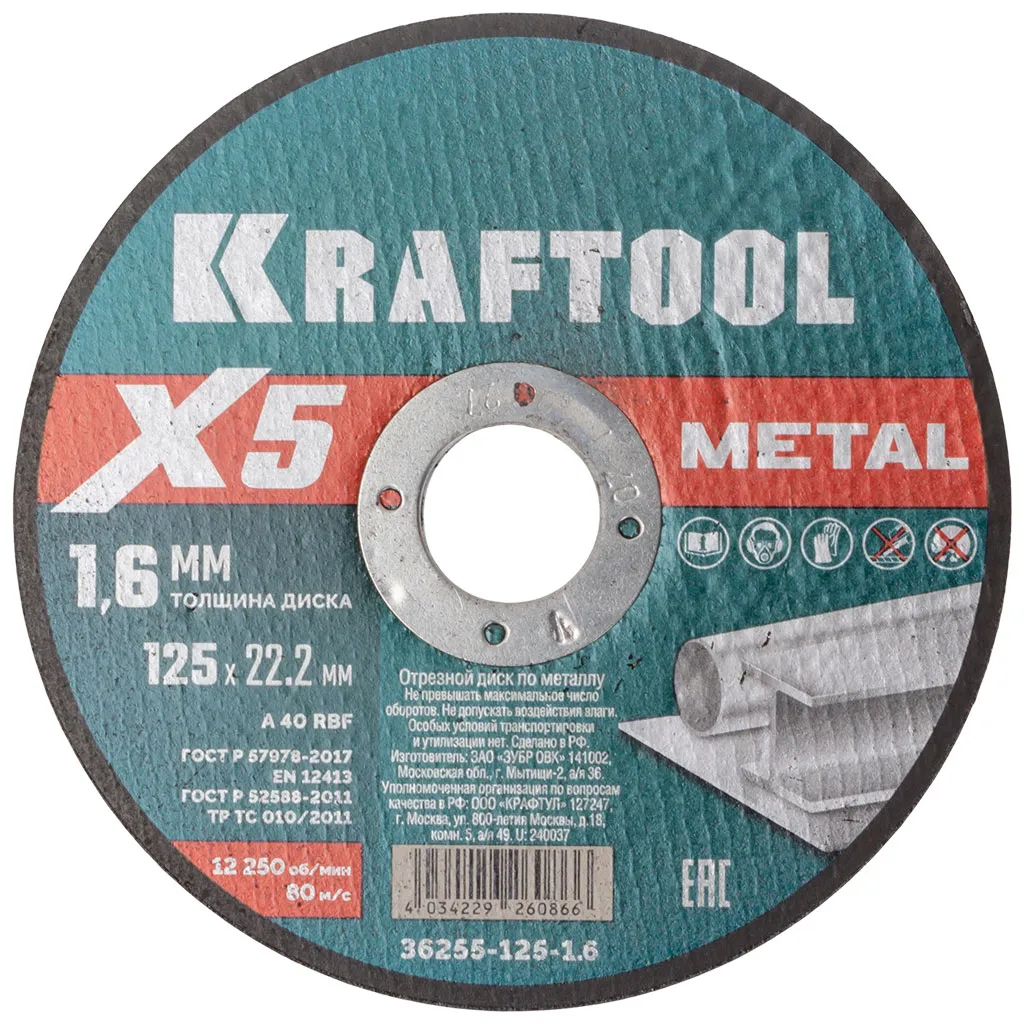 Диск отрезной по металлу Kraftool X5 Metal, 125х22,2х1,6мм