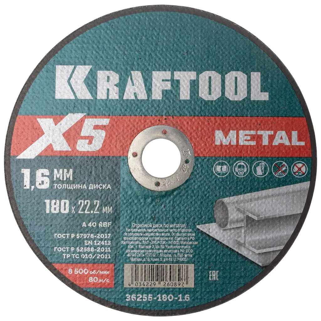 Диск отрезной по металлу Kraftool X5 Metal, 180х22,2х1,6мм