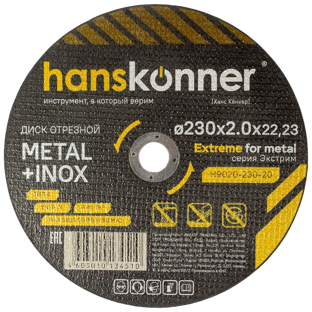 Диск отрезной по металлу Hanskonner, 230х22.2x2.0мм