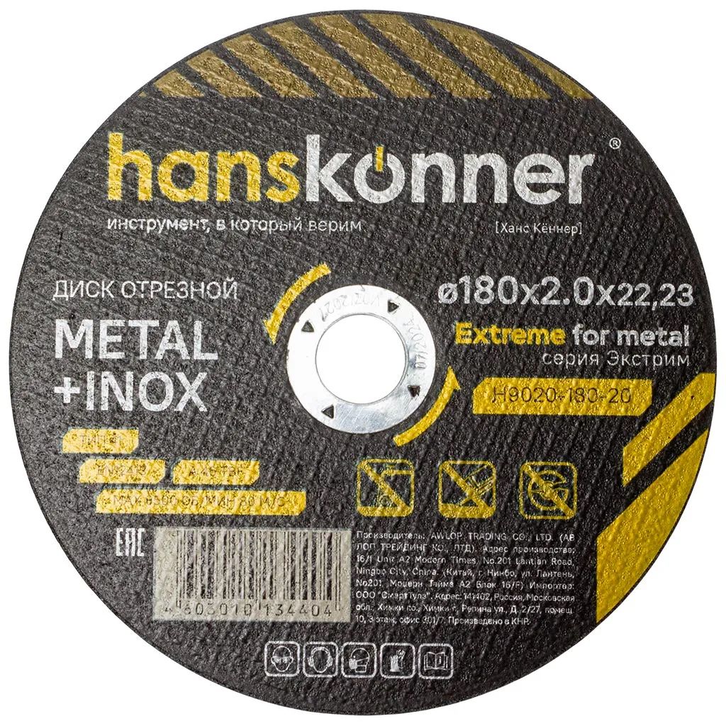 Диск отрезной по металлу Hanskonner, 180х22,2х1.6мм