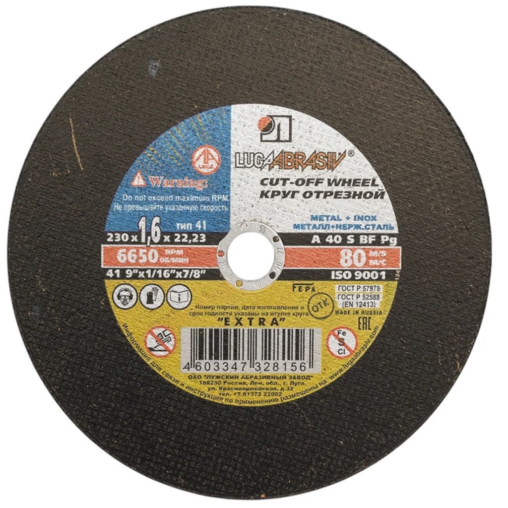 Диск отрезной по металлу Луга, 230х22.2х1.6мм