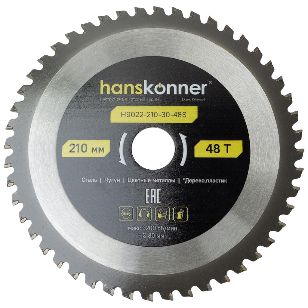 Диск пильный Hanskonner, по дереву, 210х30мм, 48 зубьев