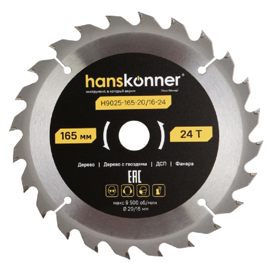 Диск пильный Hanskonner, по дереву, 165х20/16мм, 24 зубьев