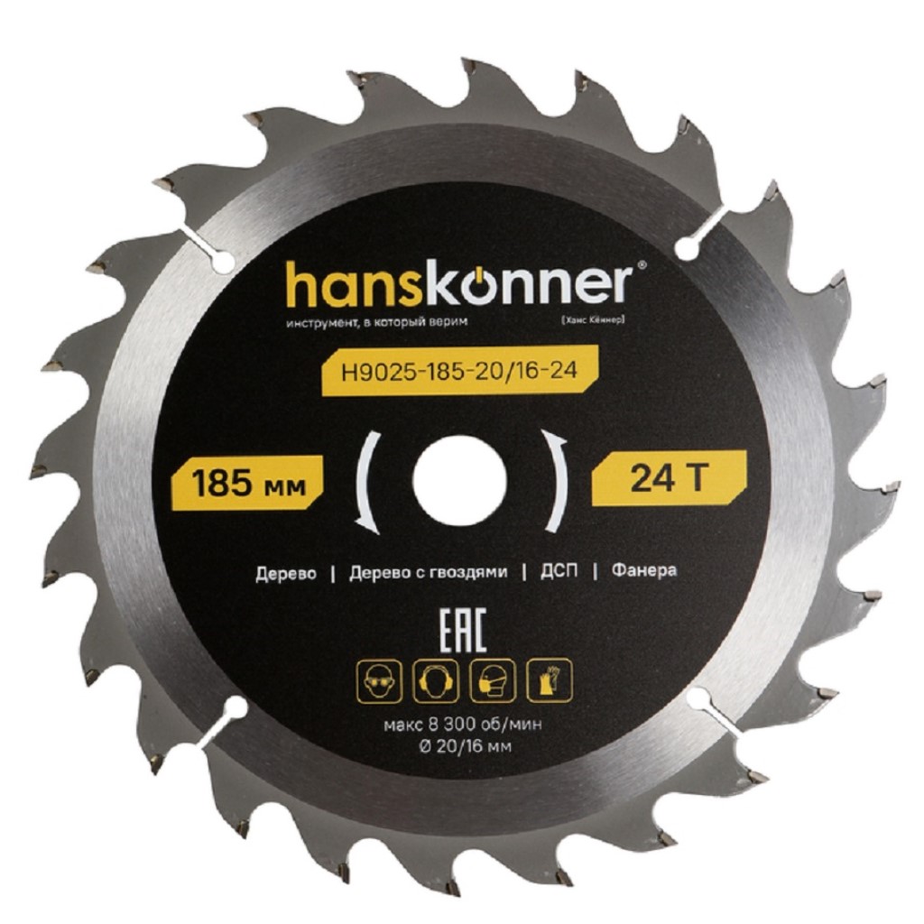 Диск пильный Hanskonner, по дереву, 185х20мм, 24Т
