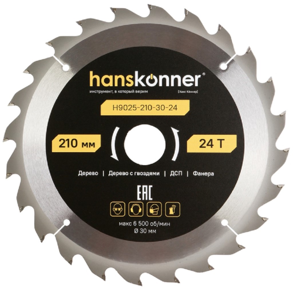 Диск пильный Hanskonner, по дереву, универсальный рез, 210х30мм, 24 зубца