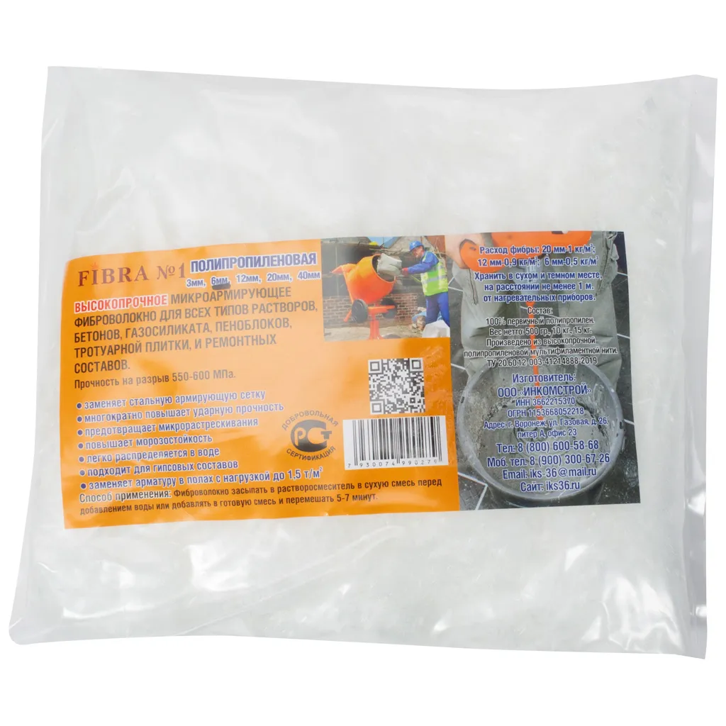 Фибра полипропиленовая высокопрочная 6мм, 500гр