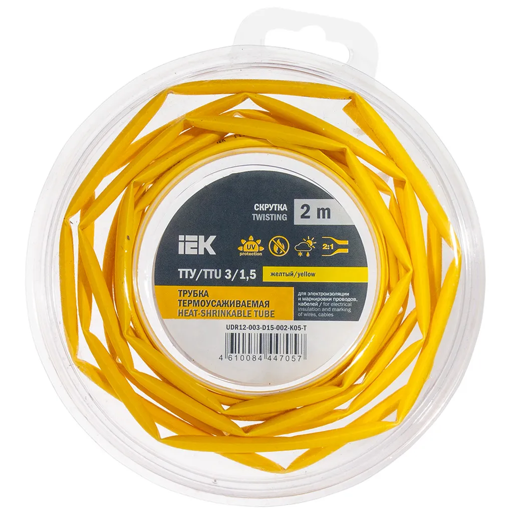 Термоусадочная трубка ИЭК ТТУ нг-LS, 3/1.5, желтая, 2м/уп.