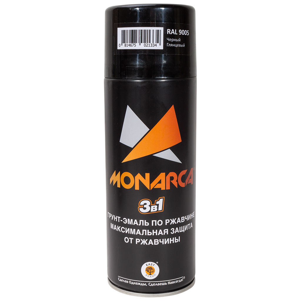 Грунт-эмаль Monarca, по ржавчине 3в1, аэрозольная, черный глянец, 520мл
