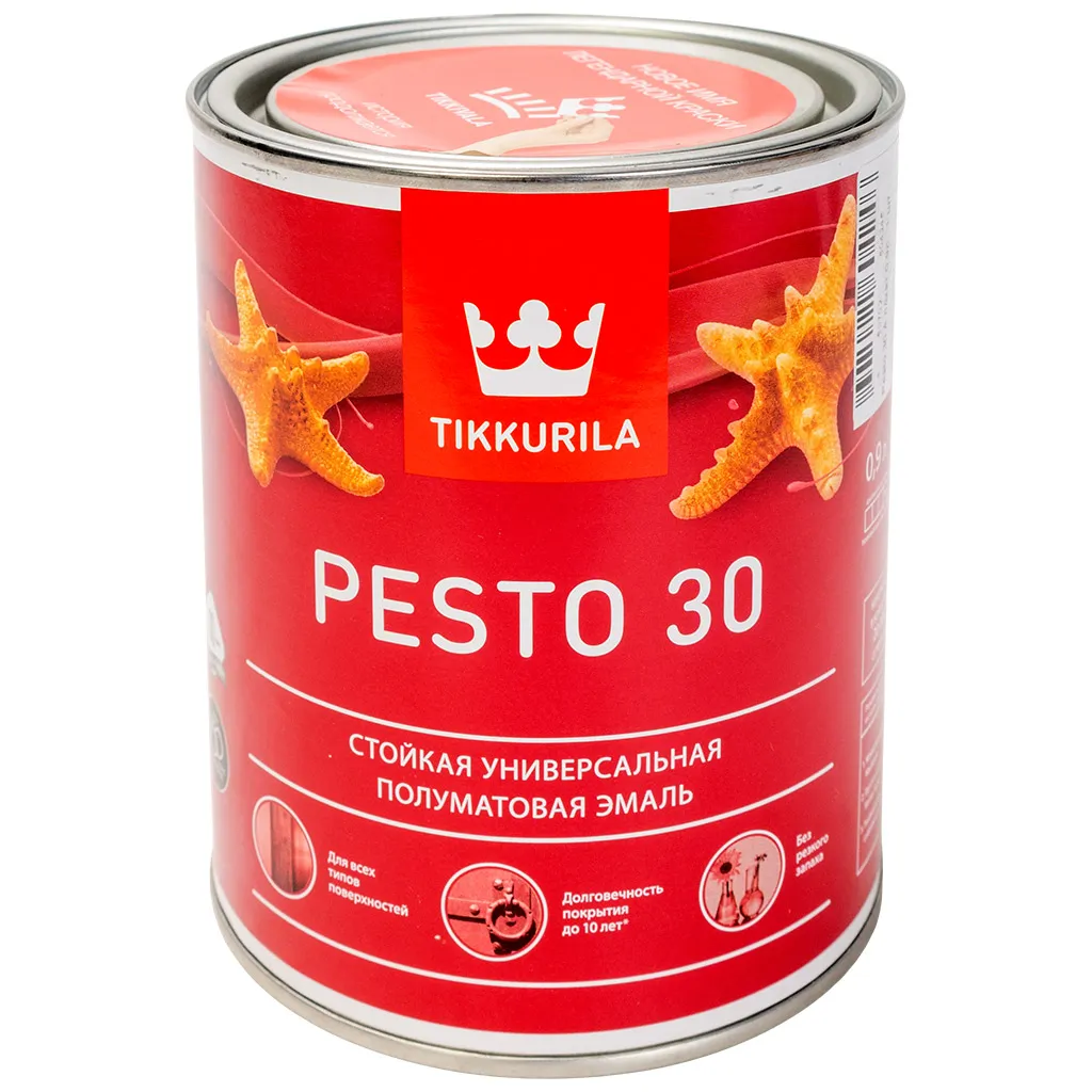 Эмаль алкидная Tikkurila Pesto 30 бесцветная, полуматовая, база С, 0.9л